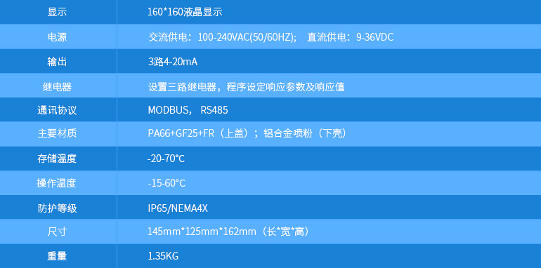 具有4~20mA,MODBUS RS485多种数据输出方式;