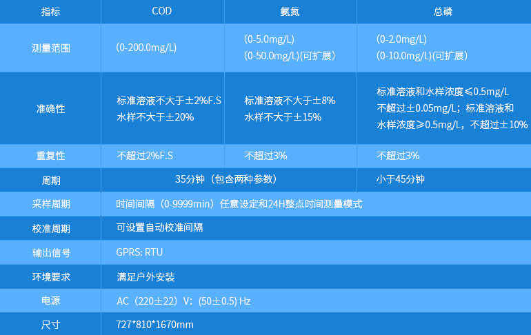 三数测量一次时间在1小时10分钟左右,满足常规在线监测需求丰富的运行模式,可规定全参数或指定参散,按需求定周 期进行监测三参数体,内部试剂配方优化,避免不同参数间数据干扰。